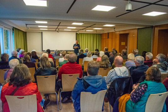 Veranstaltung mit dem Stadtarchiv im Gemeindehaus am Perthesring. Rund 80 Interessierte kommen ins Gemeindehaus, um einen Vortrag der Stadtarchivarin Marlene Klutzny zu hören und zu sehen.